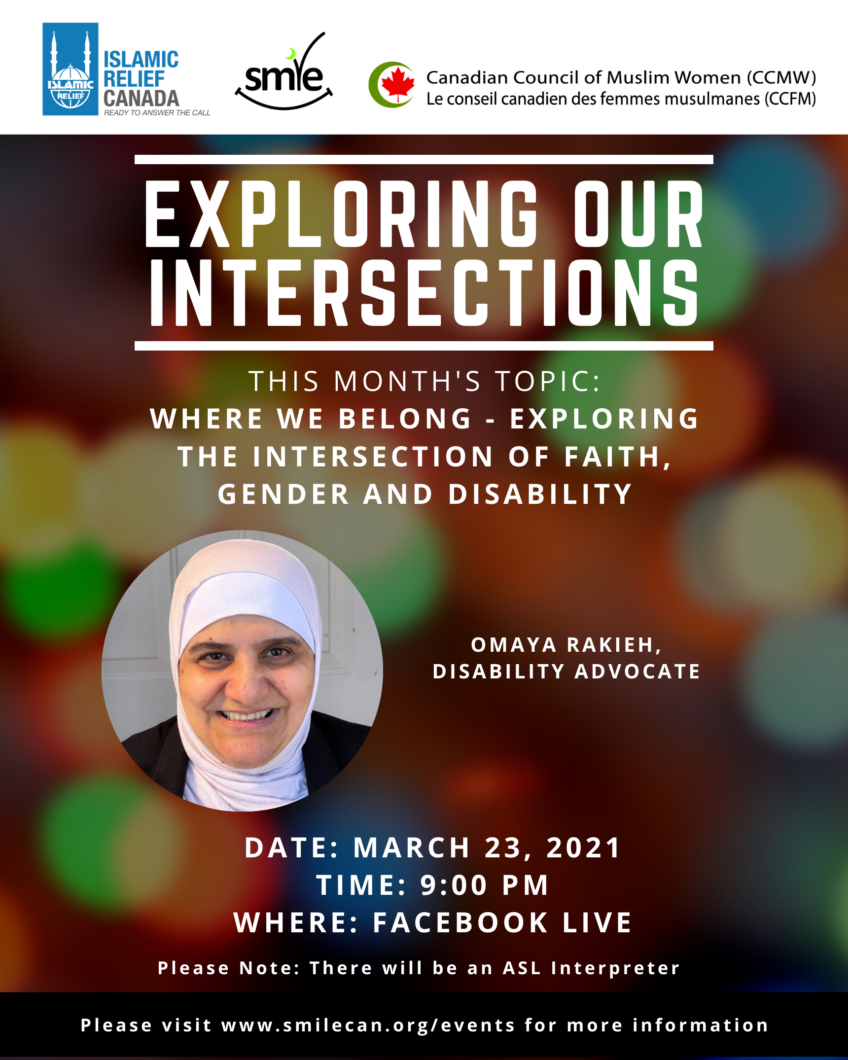 We are partnering with Smile Canada on their Monthly Facebook Live Series: Exploring Our Intersections. The topic of the March edition of the series is 'Where We Belong - Exploring the Intersection of Faith, Gender and Disability' with Omaya Rakieh, an IT professional project manager and dedicated disability advocate.
