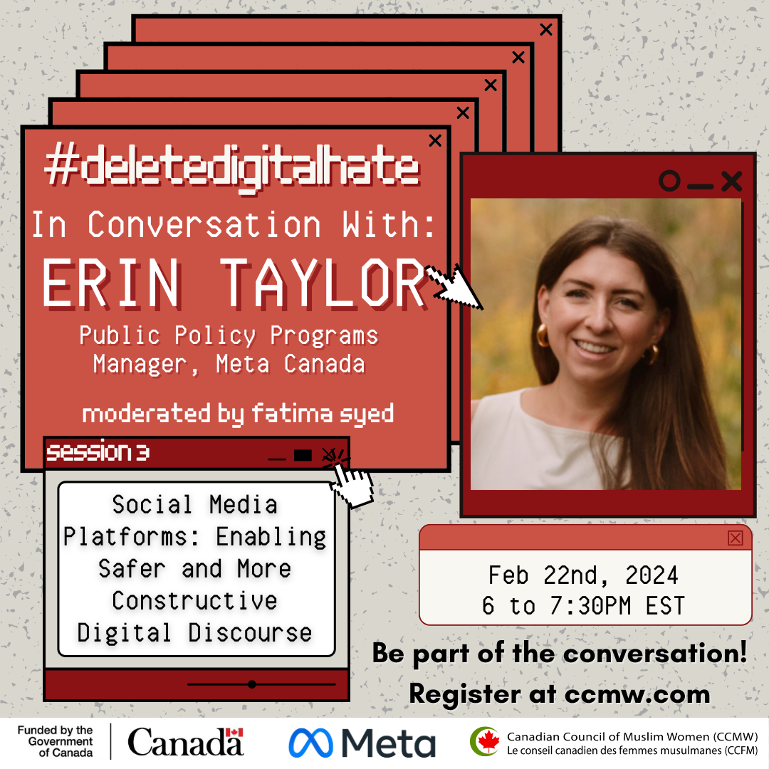 Moderated by renowned journalist, Fatima Syed, we are thrilled to have Erin Taylor, the esteemed Public Policy Programs Manager at Meta Canada, join the conversation. Erin will explore the role social media plays in enabling safer and a more constructive digital discourse. With her wealth of experience and insights into the intricate world of public policy, Erin will provide a unique perspective on how social media companies navigate the evolving landscape of expectations, regulations, and societal impact.