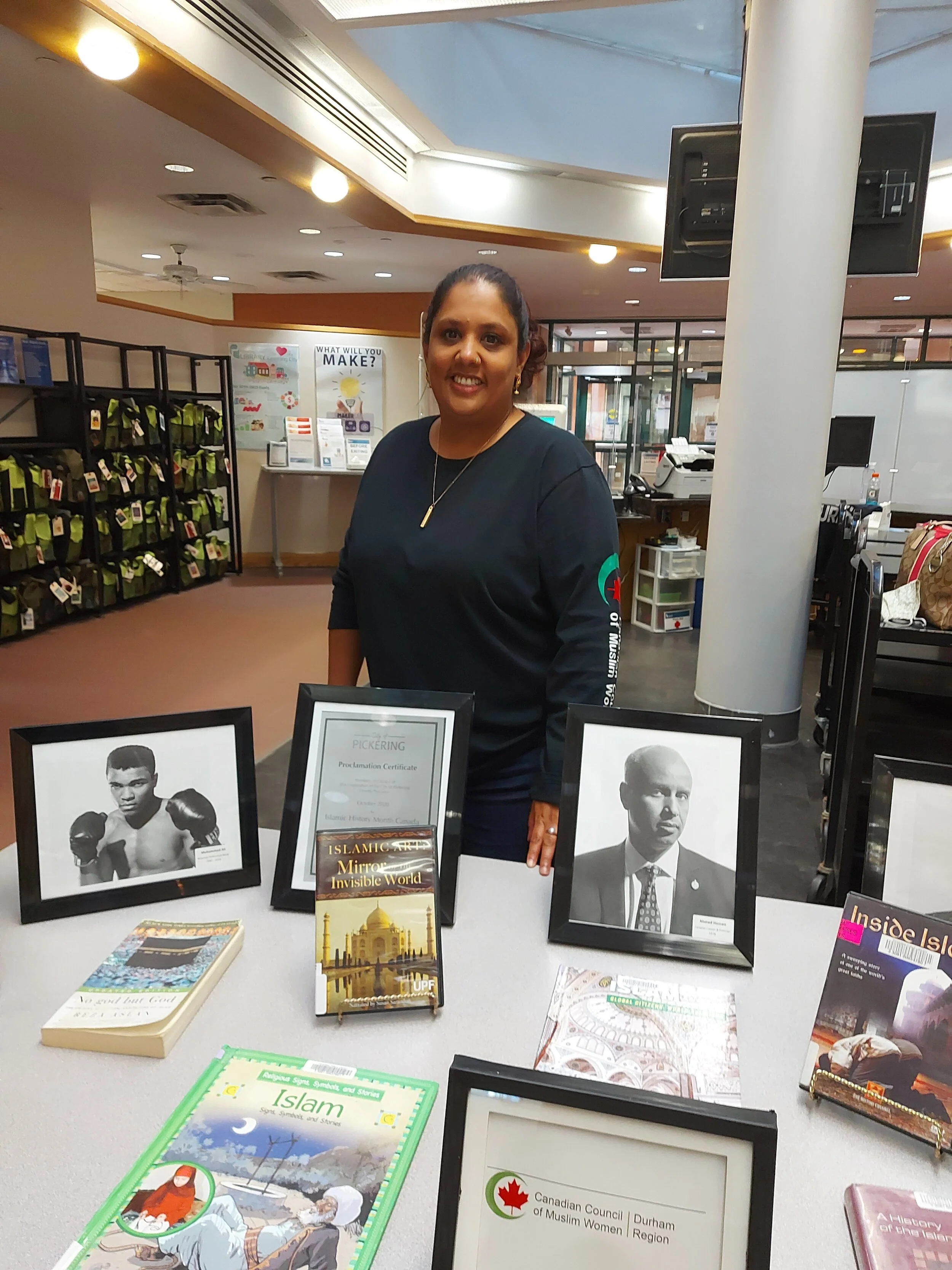 Thank you to Mayor Ryan, Pickering Council, Councillor Shaheen Butt, Councillor Dave Pickles, MP Jennifer O'Connell of Pickering, President of Pickering Islamic Centre, Mohammed Rahim, MP Mark Holland of Ajax, Regional Council person Sterling Lee, President of Friends Indeed, Vaqar Raees, Durham youth Alaina for participating in the video. Special thanks to Safia and Mehreen for organizing the Ajax public library display and Sabira for organizing the Pickering Public Library display.