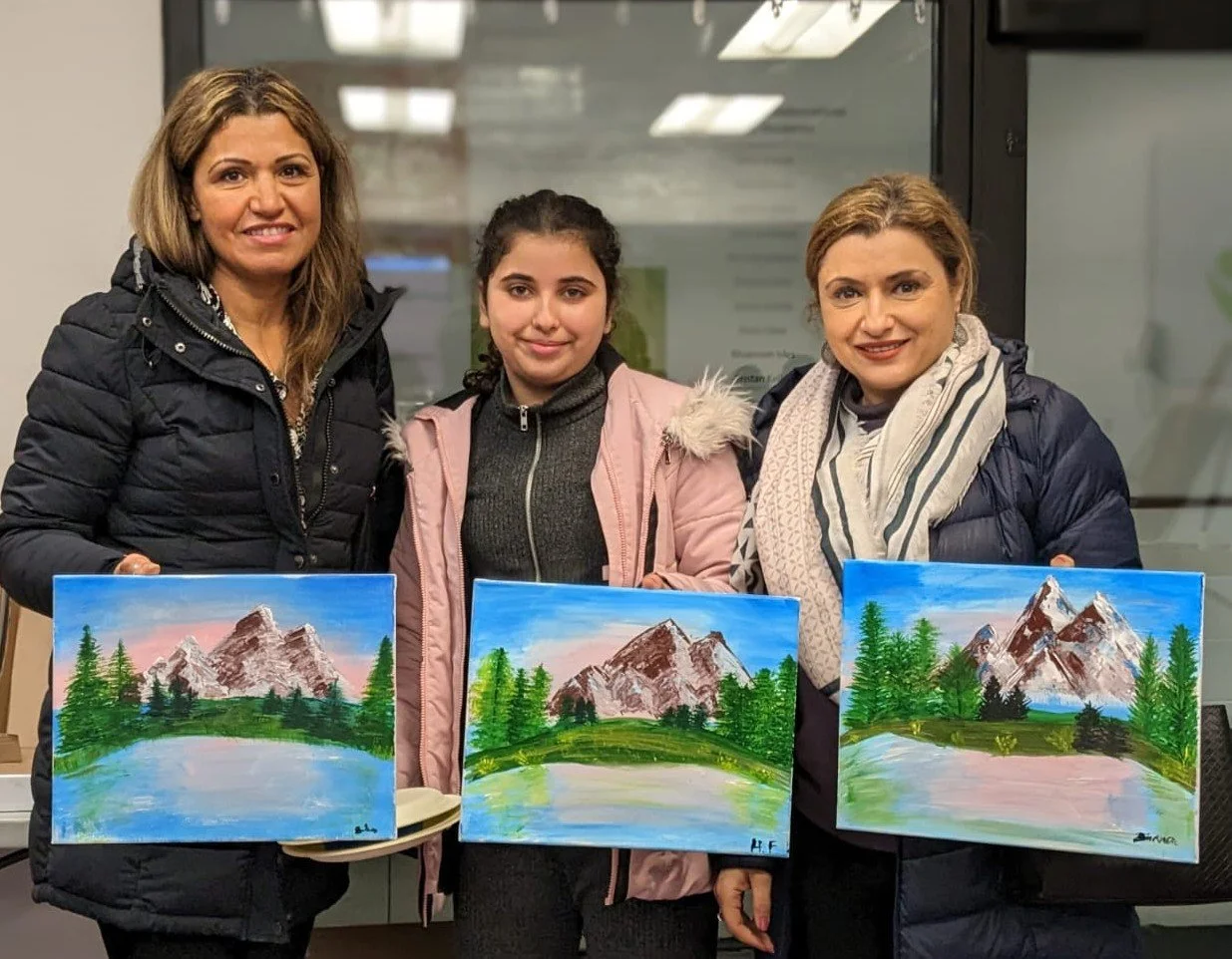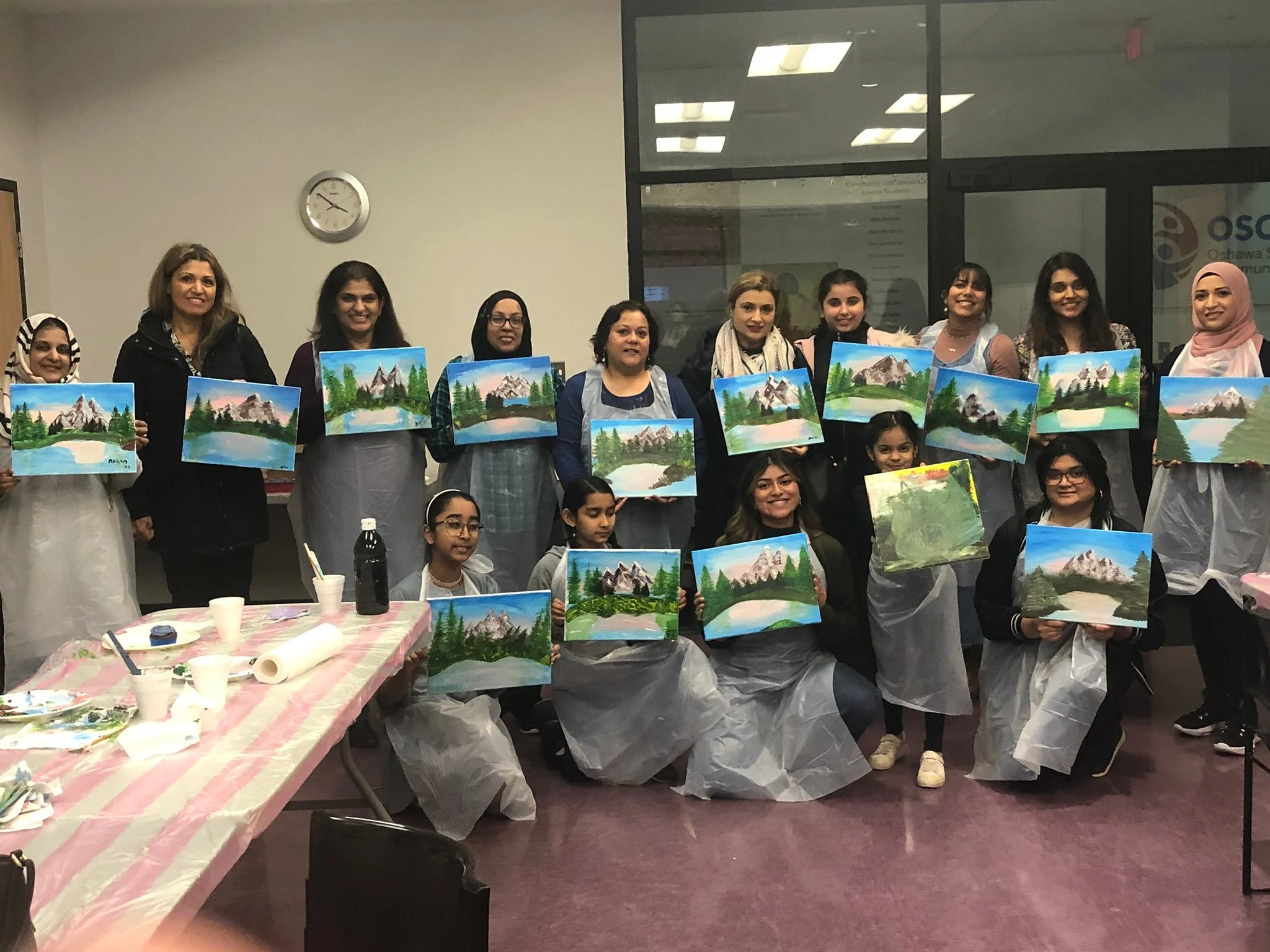 Durham Region hosted its first in person paint event for moms and children at Delpark community centre in Oshawa. We had many moms and daughters sign up for the fun event. Member Arshi Shaikh has been organizing paint events for many years for organizations through her business Studio Escape https://instagram.com/studio.esc?igshid=Yzg5MTU1MDY=