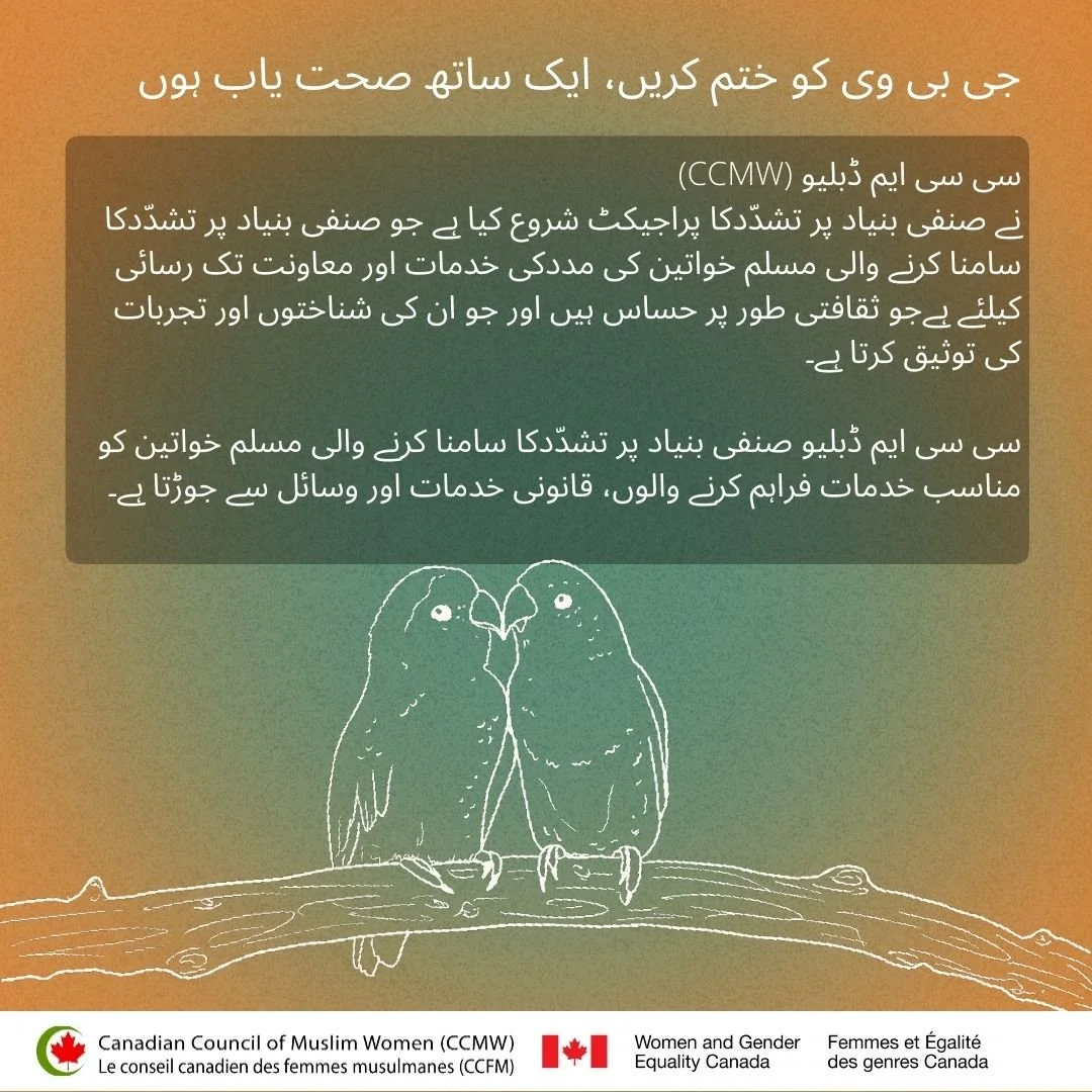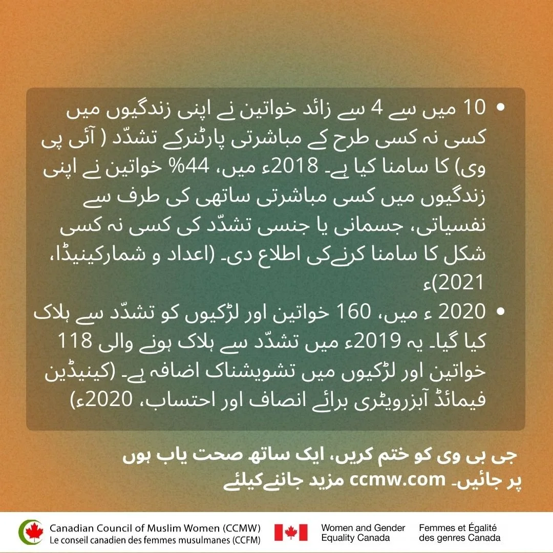 Join the conversation. Download and share the graphics with your friends and family and help keep Muslim women safe, informed, and empowered against gender-based violence.